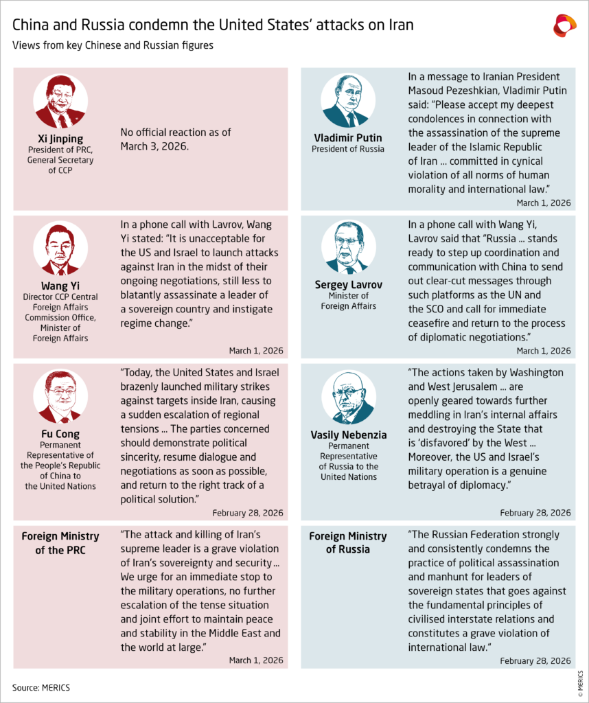 The Iran-related views from key Chinese and Russian figures suggest they are aligned on Israel’s attack on Iran and how to address the Iranian nuclear issue. Their statements highlight a shared worldview and hint at the outlines of a Chinese-Russian “strategic coordination” in the case of a major geopolitical crisis such as the military conflict between Israel and Iran. Both sides condemned Israel and indirectly called out the United States. Their language also reveals the contradictions and ambiguities in how international law and sovereignty are interpreted in global politics. While China condemned Israel’s strike on Iran, it has remained silent on Russia’s invasion of Ukraine – mirroring the West’s silence on Iran and its support for Ukraine. By positioning themselves on the moral high ground in contrast to perceived Western double standards, China and Russia are advancing an anti-hegemonic narrative against unilateralism and justifying the disruption to the international order. In doing so, they credit themselves as the stabilizers of the international order.