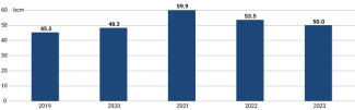 Last year Turkey’s gas imports fell significantly, from 54.7 bcm in 2022 to 47.5 bcm. This mainly stemmed from declining gas consumption in the country (down more than 6% y/y to 50 bcm), partly as a consequence of the financial crisis it is undergoing.