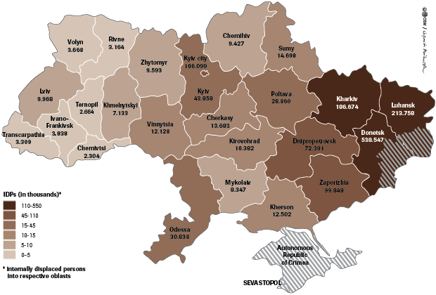 Distribution of internally displaced persons (IDPs) in Ukraine.