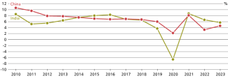 Chart 2. Economic growth in China and India in 2010–2023