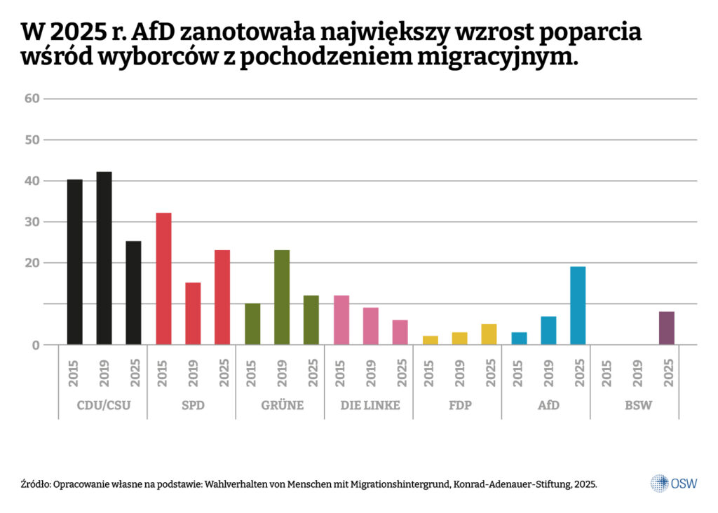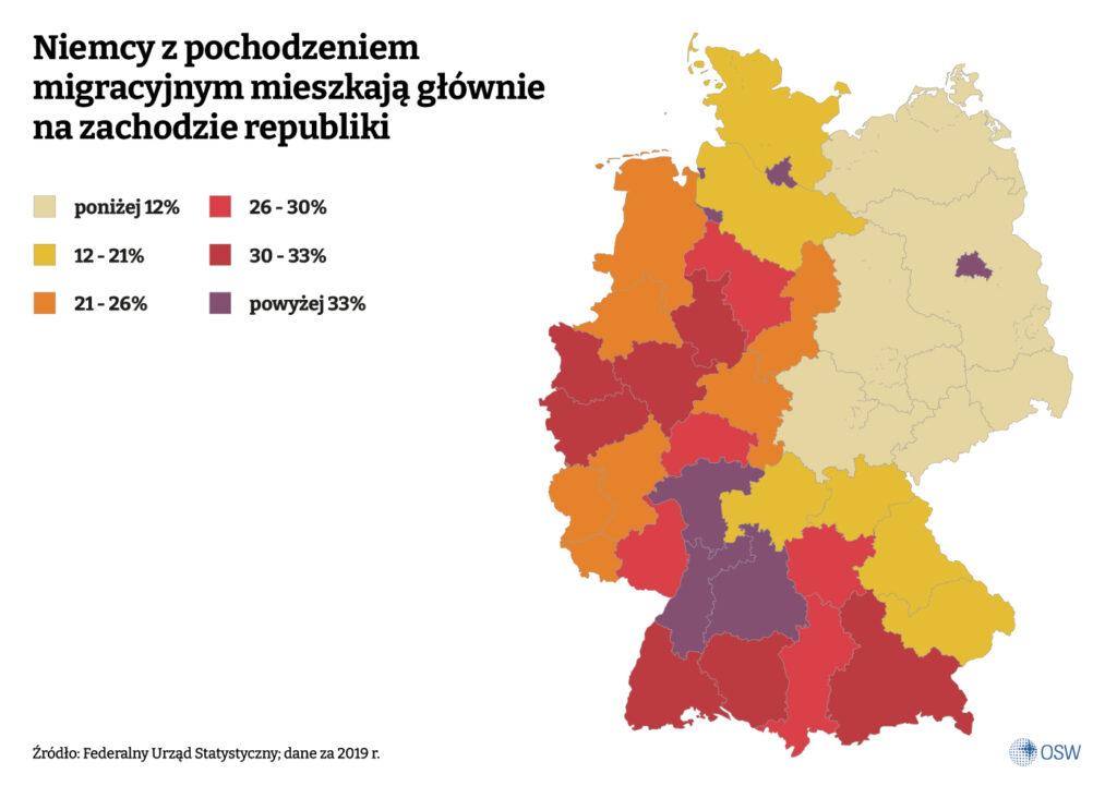 Od 2023 r. zaczęto jednak stopniowo wprowadzać nową kategorię – Einwanderungsgeschichte (osoby z historią migracji), która ma zastąpić dotychczasową. Nowa definicja jest węższa i bardziej restrykcyjna: obejmuje tylko te osoby, które same lub których oboje rodzice przybyli po 1950 r. na terytorium Niemiec. To pozornie techniczna zmiana, ale o dużych konsekwencjach politycznych. Według starszej definicji w 2023 r. w RFN żyło ok. 25 mln osób z pochodzeniem migracyjnym, czyli około 30% społeczeństwa (zob. Republika seniorów. Wyzwania demograficzne Niemiec). Zastosowanie nowego kryterium automatycznie ograniczyłoby tę liczbę – część dzieci i wnuków imigrantów z niemieckim paszportem po prostu wypadłaby ze statystyki.