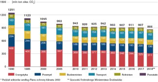 Wykres. Emisja gazów cieplarnianych w Niemczech według sektorów*