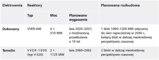 Tabela. Działające i planowane bloki jądrowe w Czechach