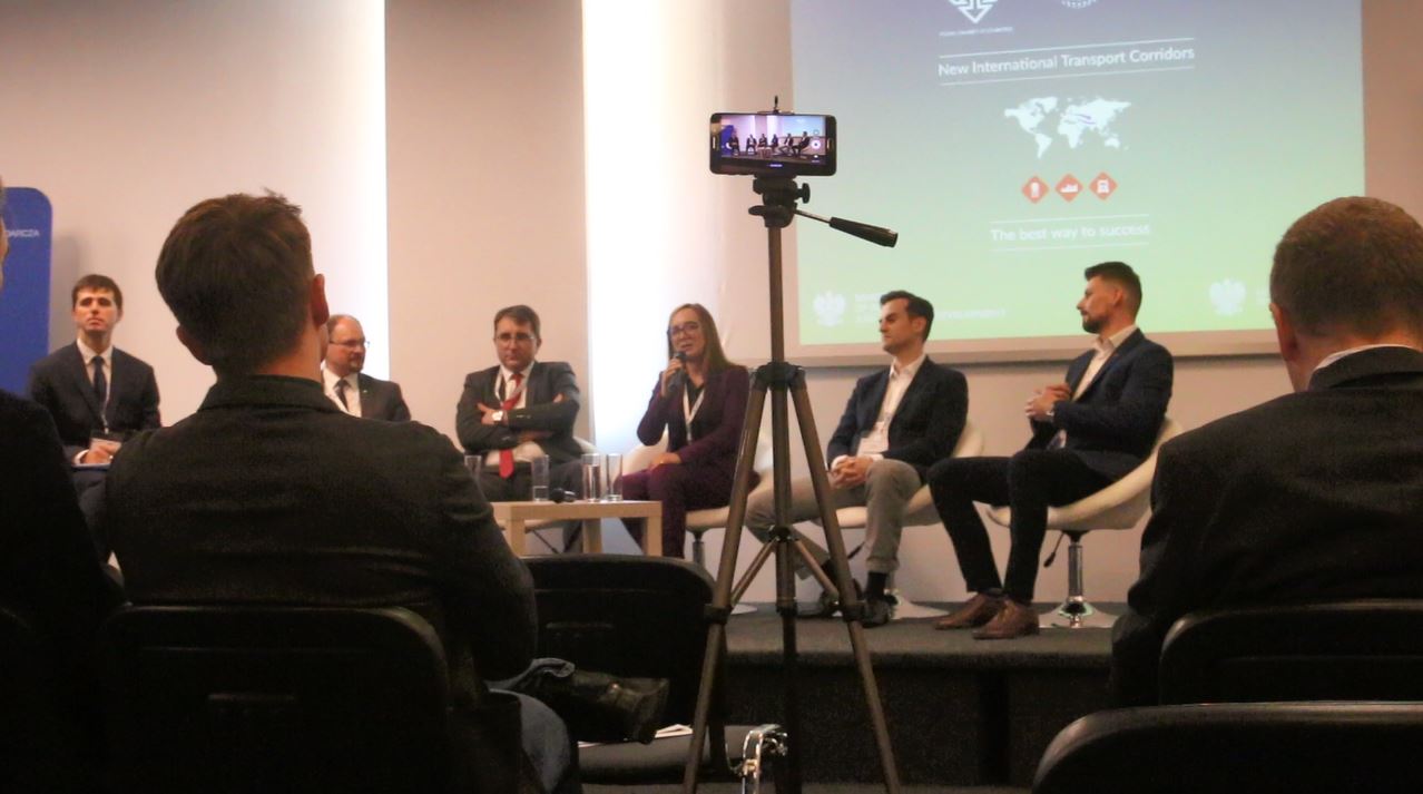 W pierwszym panelu dyskusyjnym, moderowanym przez Jakuba Jakóbowskiego, uczestniczyli przedstawiciele branży transportowej i intermodalnej. Rozmawiano o potencjale polskich centrów logistycznych w obsłudze lądowego transportu kolejowego między Europą i Azją. Posiadając ok. 10% udziału w rynku, Polska staje się jednym z głównych hubów dla towarów przewożonych w ramach połączenia kolejowego Azja-Europa-Azja, zdolnym konkurować z centrami logistycznymi w Zachodniej Europie. Sprzyja temu pozycja geograficzna i konkurencyjność kosztowa. Zwiększenie pozycji Polski wymaga jednak skoordynowanych działań administracji i biznesu, w tym rozwoju centrów logistycznych – nowych terminali intermodalnych, przestrzeni magazynowych, usług zapewniających wartość dodaną. Kluczowe dla ich rozwoju jest rozwijanie siatki połączeń intermodalnych z państwami Europy Środkowej, Skandynawii i Bałkanów. W wypowiedziach panelistów przewijała się konstatacja, że polski biznes powinien się integrować i oferować złożone, finalne produkty logistyczne na terenie UE, których oczekują partnerzy biznesowi z Azji.